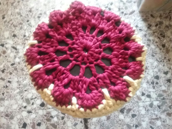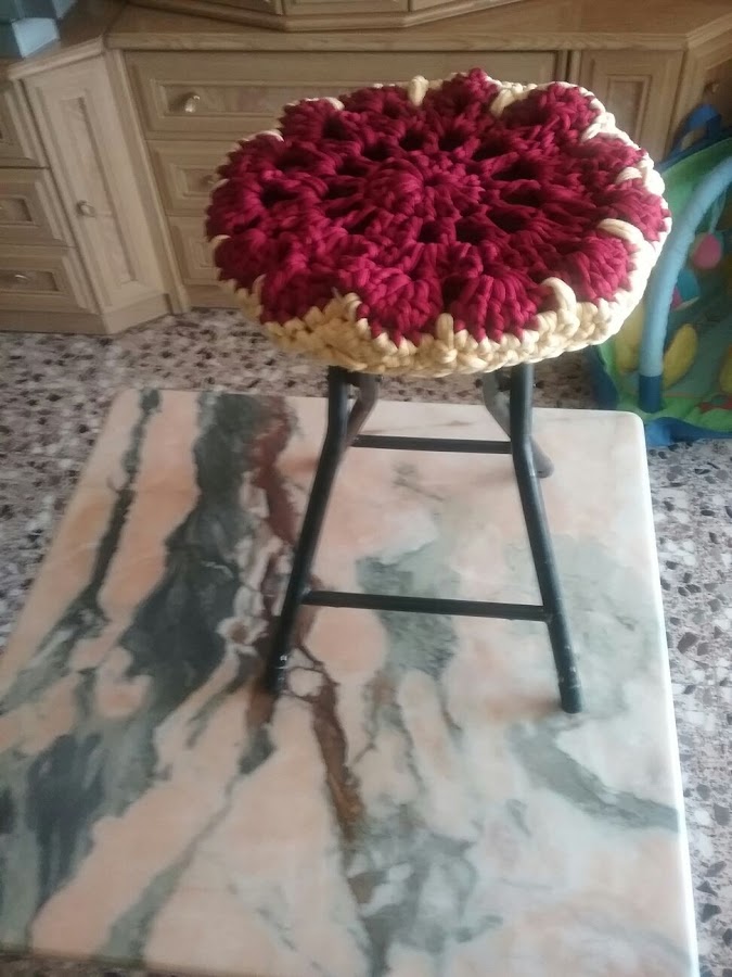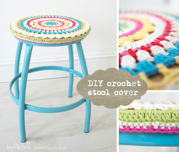 No encontré en ningún sitio un patrón como tal para hacer una funda para banqueta pero se puede hacer con uno de granny o con uno de mandala.