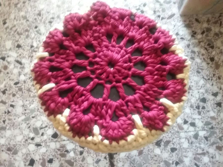 Así que busqué por pinterest ideas y me encanto la idea de forrarla a ganchillo y como tenía restos de trapillo pues me puse al lío .