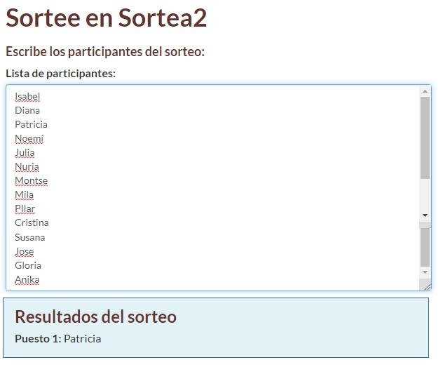 Ha llegado el momento de conocer al ganador del sorteo entre todas las participantes. Lo he llevado a cabo a través de la página de “Sortea2”
