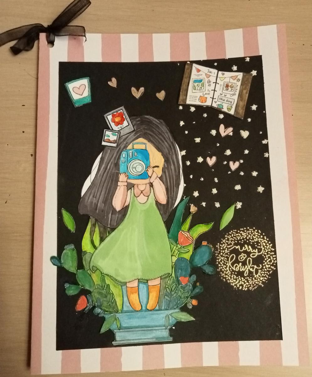 Este intercambio consistía en preparar una tarjeta basada en el siguiente modelo de Vicky Papaioannou: