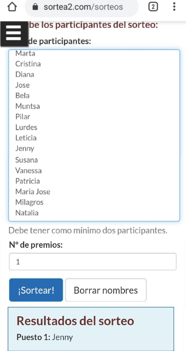 Now, it’s the moment to know the winner of the raffle among all the participants. I’ve made it through the web page Sortea2