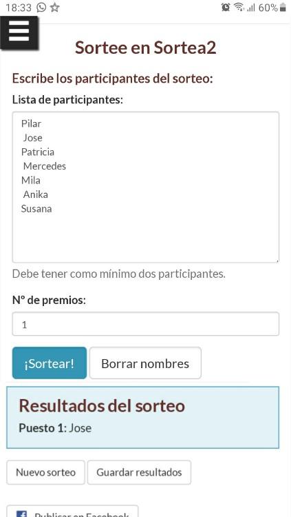 Now, it’s the moment to know the winner of the raffle among all the participants. (Surprise!) I’ve made it through the web page “Sortea2”