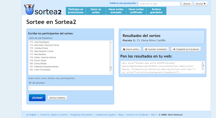 El sorteo se ha realizado a través de la web sortea2 y la afortunada ha sido: