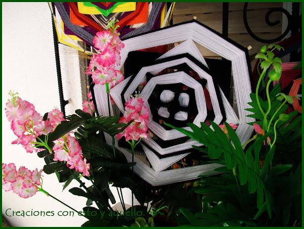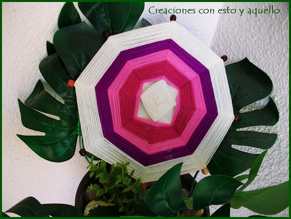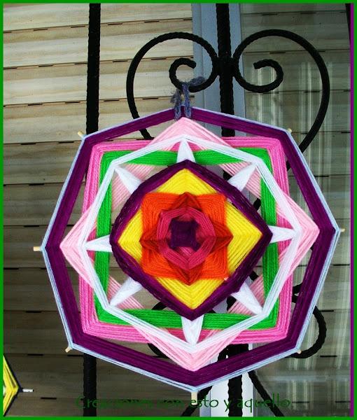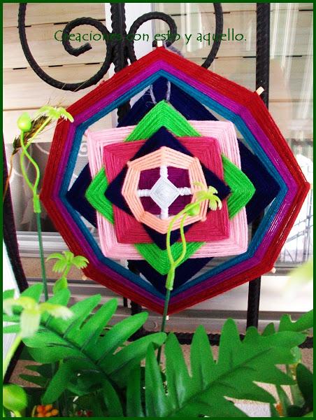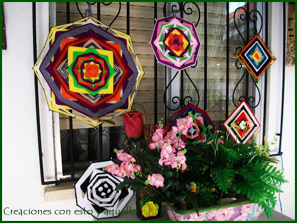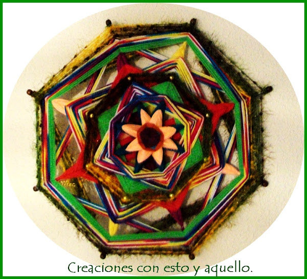 Bueno, les cuento y agradezco las sugerencias para tensar las débiles varillas de las cañitas voladoras que usé para hacer esa mandala grande. Me ha quedado el recuerdo de la foto y los palos partidos ...