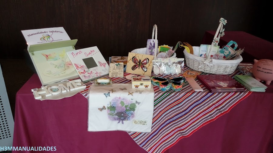 En ADELES han recibido cantidad de manualidades solidarias venidas de prácticamente todas las Comunidades Autónomas (Cataluña, Valencia, Andalucía, Extremadura, Madrid, Asturias, País Vasco, Navarra). Jabones, percheros, tarjetas, marcapáginas, libretas, colgantes, imanes, anillos, cojines, tejas, espejos, piedras, álbumes, estanterías, carteles, cajas... ¡un sinfín de pequeños y grandes detalles llenos de mariposas y cariño!
