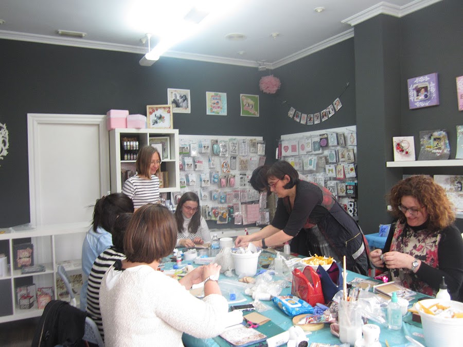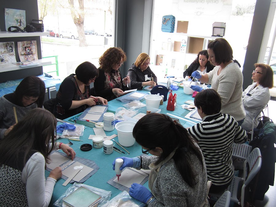 Fue un día espectacular, chicas!!! Gracias a todas las que asististeis a los talleres, a Diana por haberme invitado a Salamanca, a Inma por su predisposición y su cariño y a todas las scraperas y adictas al Mixed Media jejeje por compartir esta experiencia conmigo!!! Os quiero!!!