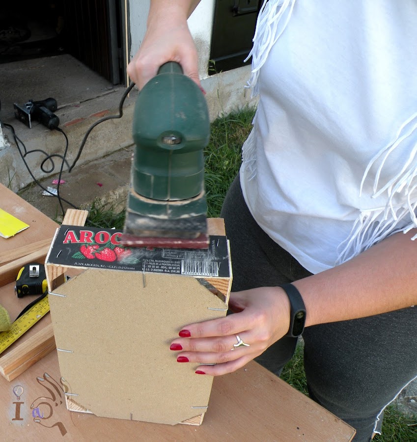 Comenzamos lijando la superficie exterior de las cajas para quitarles las posibles astillas que puedan tener, aunque venían bastante bien.