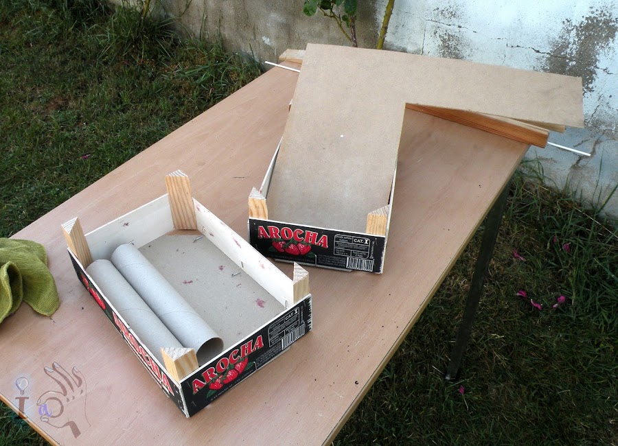 He de decir que me retaron hace mucho tiempo, creo que más o menos en Semana Santa, con lo cual he tenido la suerte de poder realizar este DIY este verano en mi pueblo, que tengo más espacio y más materiales... por eso en algún caso veréis las manitas de mi padre que me ayudó... porque le cuesta dejarme la sierra de calar y esas cosas...y además las fotos que hacía él salían movidas, pero casi casi todo lo hice yo.