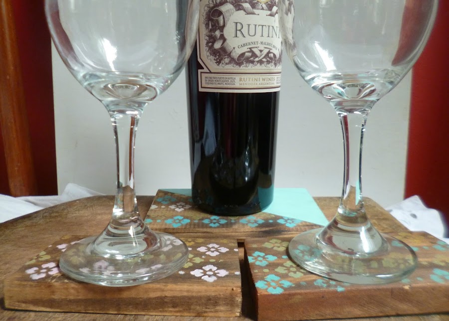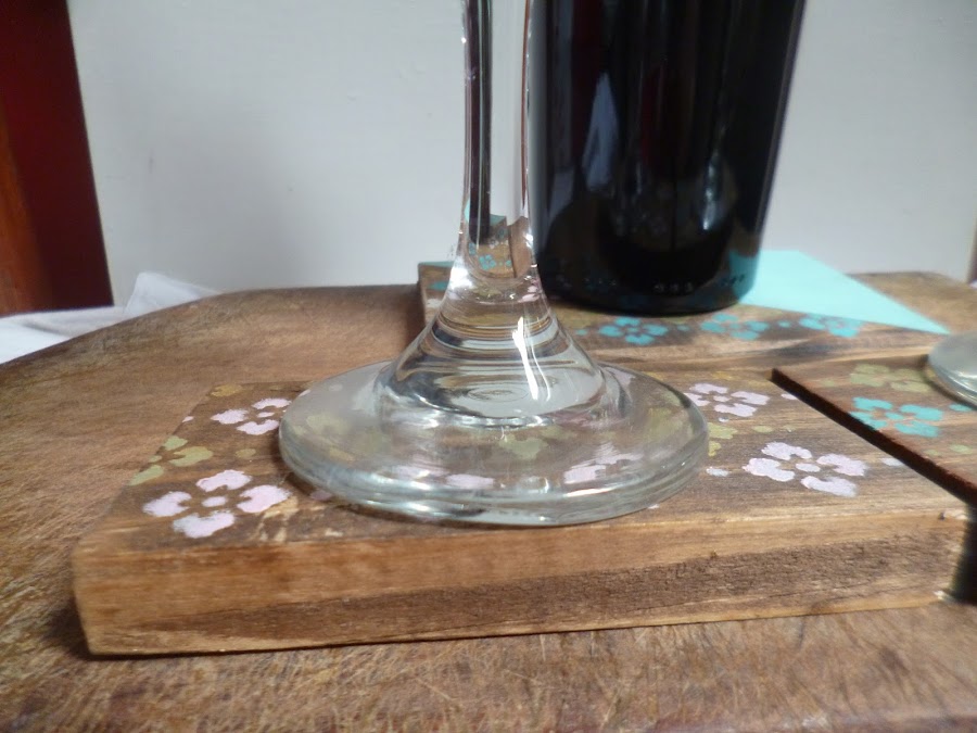 Ninguna de las maderitas tienen el mismo tamaño,pero bueno,tampoco era tan grave hacer un set de posavasos y botella con maderitas diferentes.