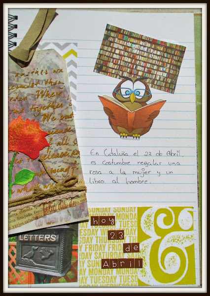 Estos días de primavera no me están sentando muy bien para scrapear, me faltan ganas, motivación. Ya perdonareis que no haga entradas tan seguidas, pero me lo estoy tomando con calma, total el scrap y las manualidades tienen que ser una diversión y no una obligación, si tengo que bajar un poco el ritmo pues así se hará, espero no ser la única y que haya más gente que se encuentre o se haya encontrado con esta situación así seguro que me entenderéis. Bueno después del discurso, os presento el reto de cada semana de mi smash ( que todo hay que decirlo, gracias a los retos sigo haciendo cosas), aunque viene con retraso, la (pereza no hay quien me la quite), esta semana trata de "Hablando de libros", ya que el 23 de abril se celebra el día internacional del libro y en mi tierra: Cataluña, se celebra Sant jordi, donde es tradición regalar un libro al hombre y una flor a la mujer, así que como no voy a plasmar un acontecimiento tan importante como este, así que de la mano de Patry otra semana más nos da unas pautas para hacerlo y el resultado es este: