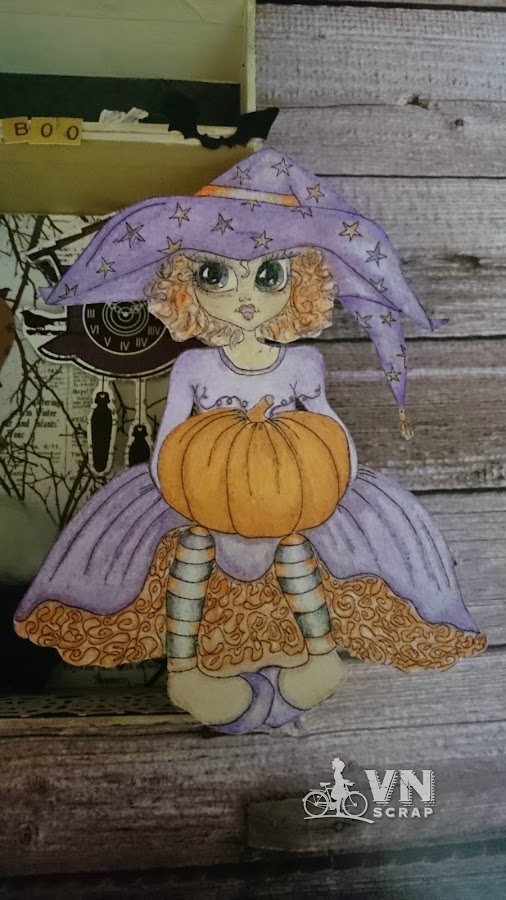 Mi brujita está pintada con colores de madera sencillos y utilizando difuminos también. Me gusta mucho la combinación de colores de la ropa.