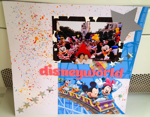 En Play Scrap, nos proponen hacer un LO en el que plasmemos el destino que siempre hemos soñado y yo siempre he deseado ir a Disneyworld en Orlando que es el que me queda por ver ya que en el de Paris ya he estado.