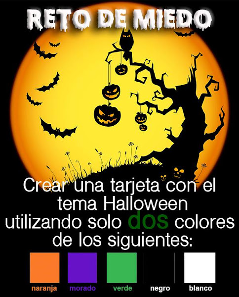 Debes realizar una TARJETA utilizando solo dos de los colores que se especifican, puedes utilizar blanco o negro para los acentos y el tema es Halloween o Día de Muertos.