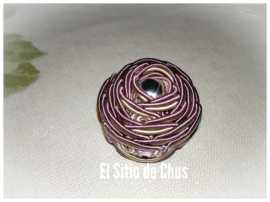 Se trataba de hacer un broche con cinta plisada y un botón decorado, quedaba precioso el modelo que nos envío Maite, pero me enamoré de esta cinta que me regalo mi amiga Susana y no me pude resistir a usarla para este reto.