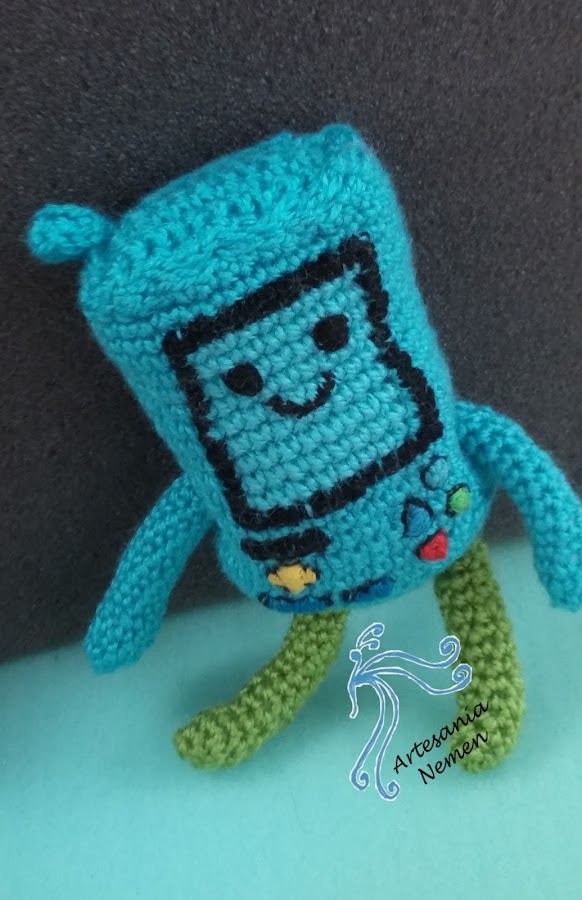 Este último es Bimo un personaje de la hora de aventuras, no es el mas complicado pero es un amigurumi muy especial ya que lo he sacado del peluche de la foto de abajo,