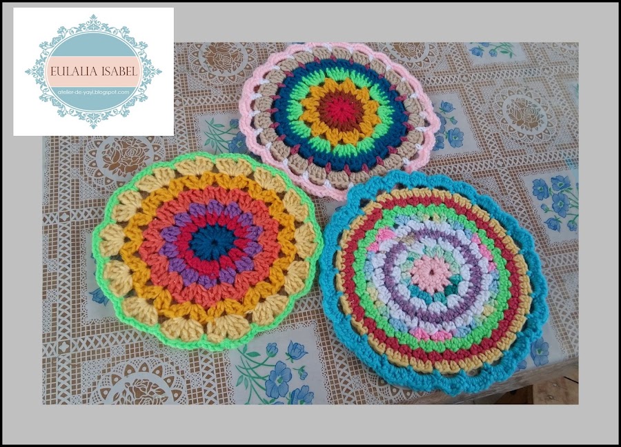 Tejidas con lanas de varios colores y endurecidas con cola blanca, me agrada como quedaron.