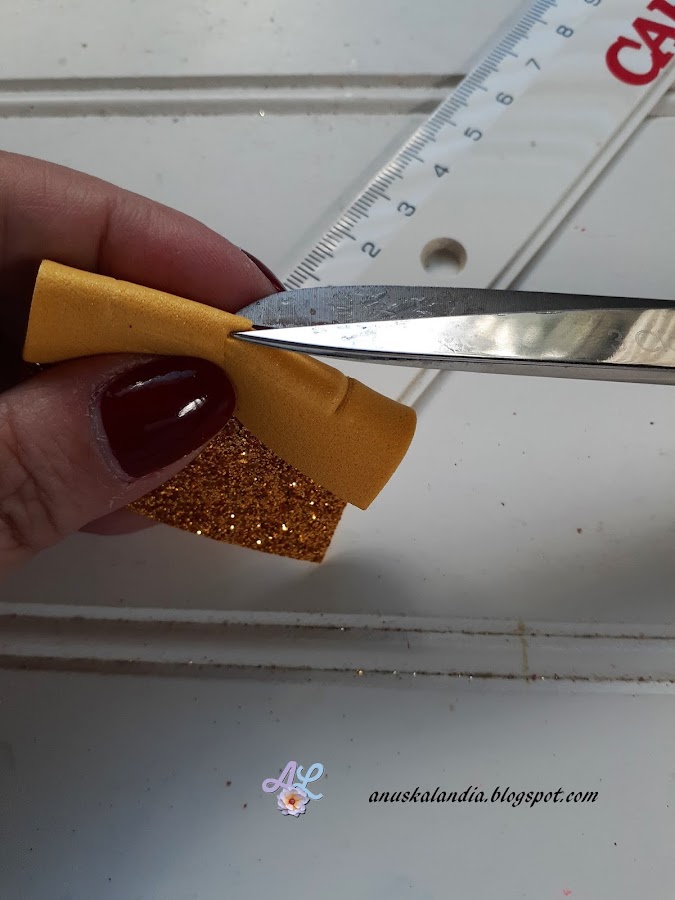 5.- Cortamos una tira de 5 mm. para pegar en el centro.