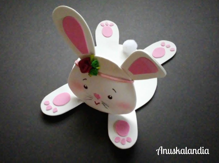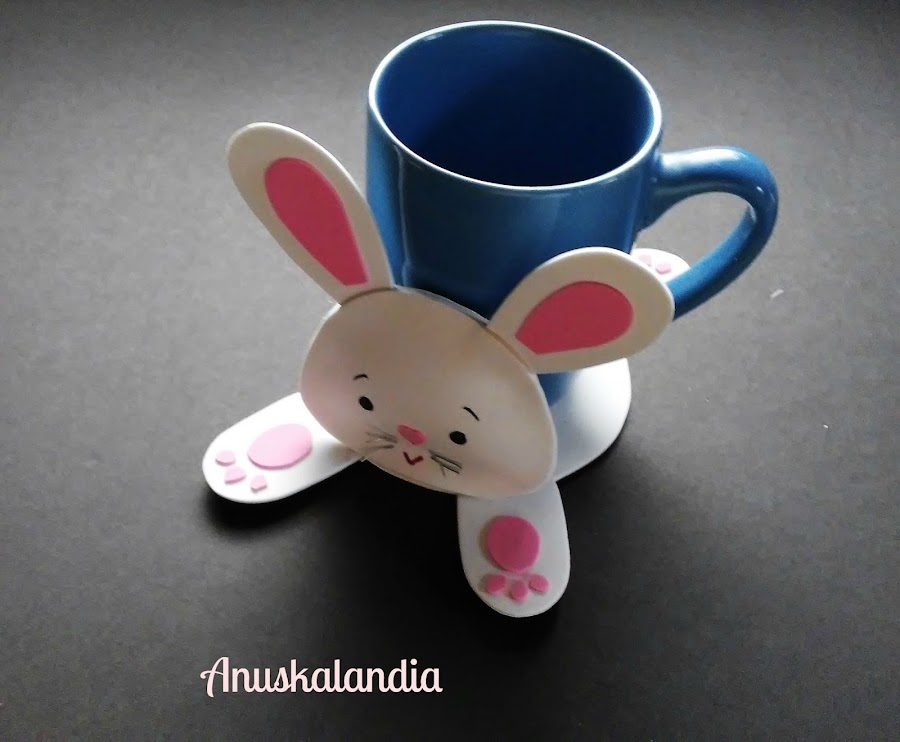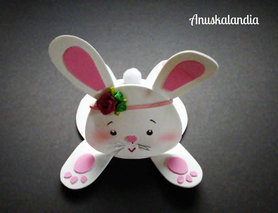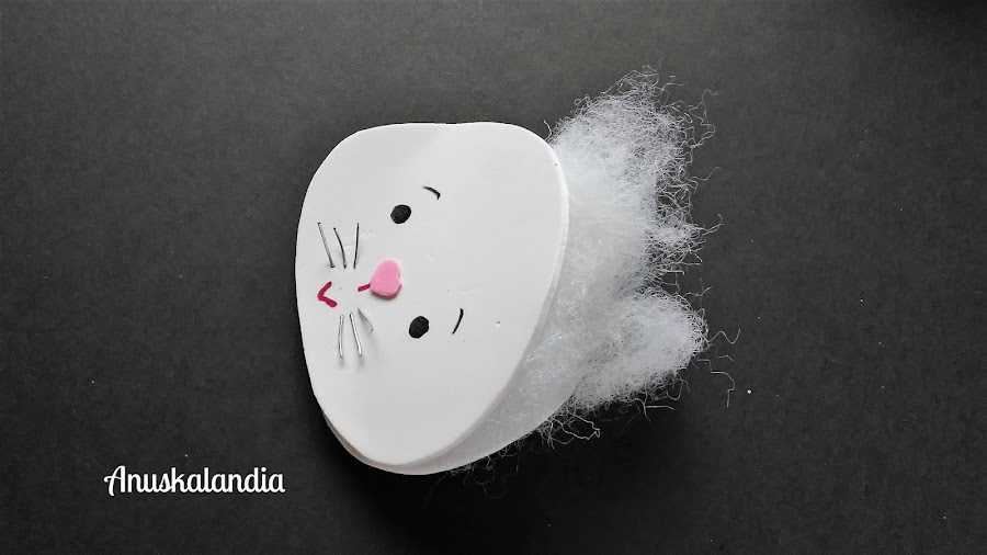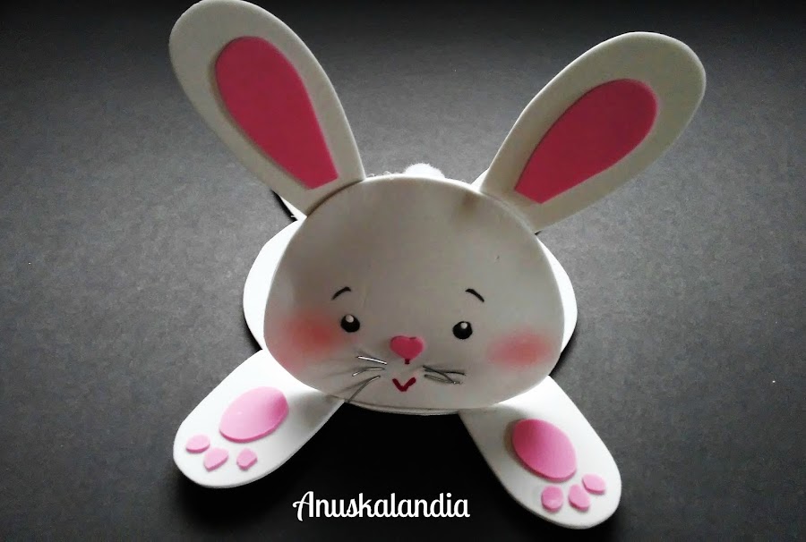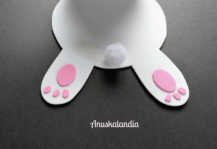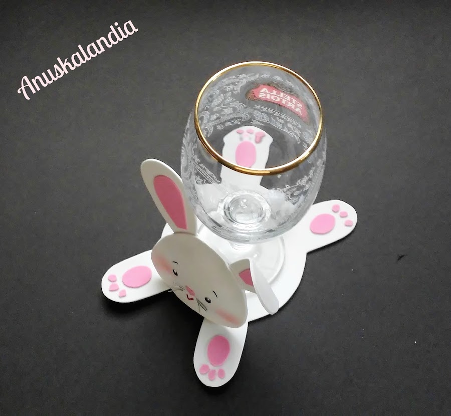 8.- Pero, si le añadimos un poquito de decoración, pasamos de tener un posavasos "CONEJITO" a un posavasos "CONEJITA".