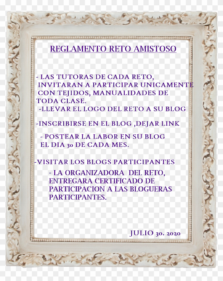 Debo recordar a las amigas blogueras , que la naturaleza de estos Retos Amistosos, es la elaboración de tejidos, manualidades de toda naturaleza, etc y otras disciplinas que salgan de nuestras manos..