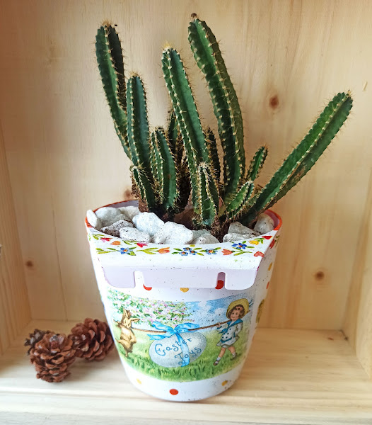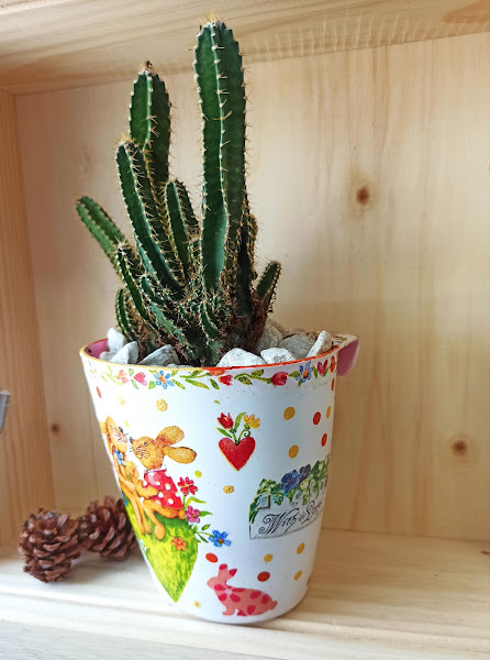Le dí imprimación porque era rosa y depues decoré con servilletas y añadí unos lunares.