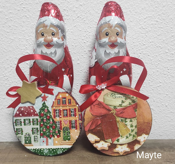 Conchi nos propone decoracion para el arbol, pero el mio ya tiene de TÓ, asi que les ha tocado a mis amigas recibir el detalle