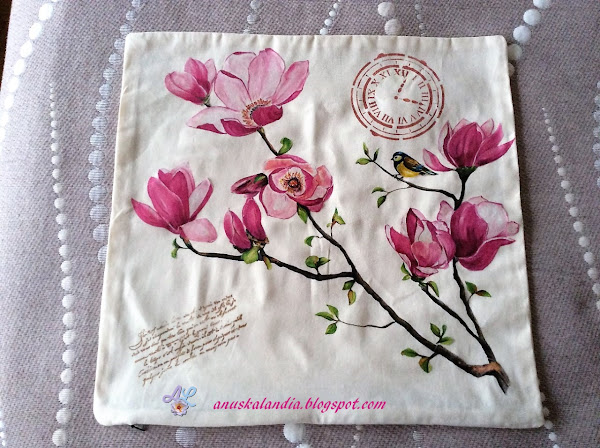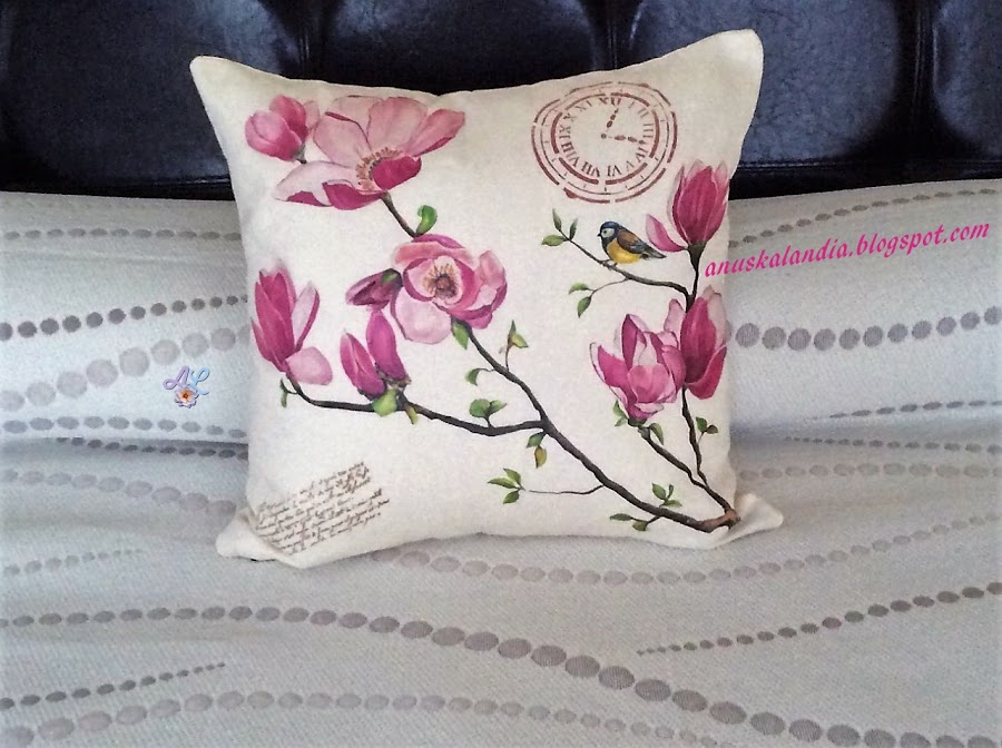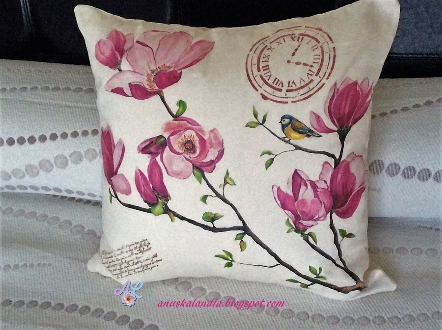 Hay un par de técnicas que no he realizado. La primera hacer el cojín yo o tunearlo. No tenía tela en un tono liso y no tenía cojín para reciclar, así que lo compré, tanto la funda como el relleno. Por otro lado, la pintura dimensional, lo intenté, no una si no varias veces, ¡madre mía, que chapuza!, así que la retiré, con toallita húmeda y agua. Por cierto, menos mal que me salió un churro, ya os digo, que no hay mal que por bien no venga, no me di cuenta (es lo que tiene no dominar el inglés y andar a la carrera) que yo vi pintura dimensional en Amazon, y dije, ¡para mi!.