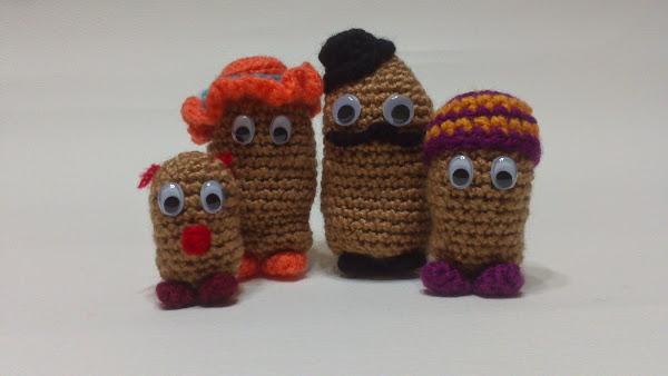 La familia "Papas" esta realizada siguiendo el patrón de la propia Srta. Cacahueta y lo podéis encontrar haciendo clic aquí con él se han realizado todos los miembros de esta singular familia: papá papa, mamá papa, el hijo mayor papa y bebé papa. Con la única diferencia que a algunos se les ha dado más o menos puntos que a los demás.