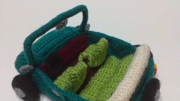La tejedora oficial de este reto ha sido mi madre, yo solo la he ayudado cosiendo algunas partes del coche familiar y algunos detalles de los pequeños de la familia :)