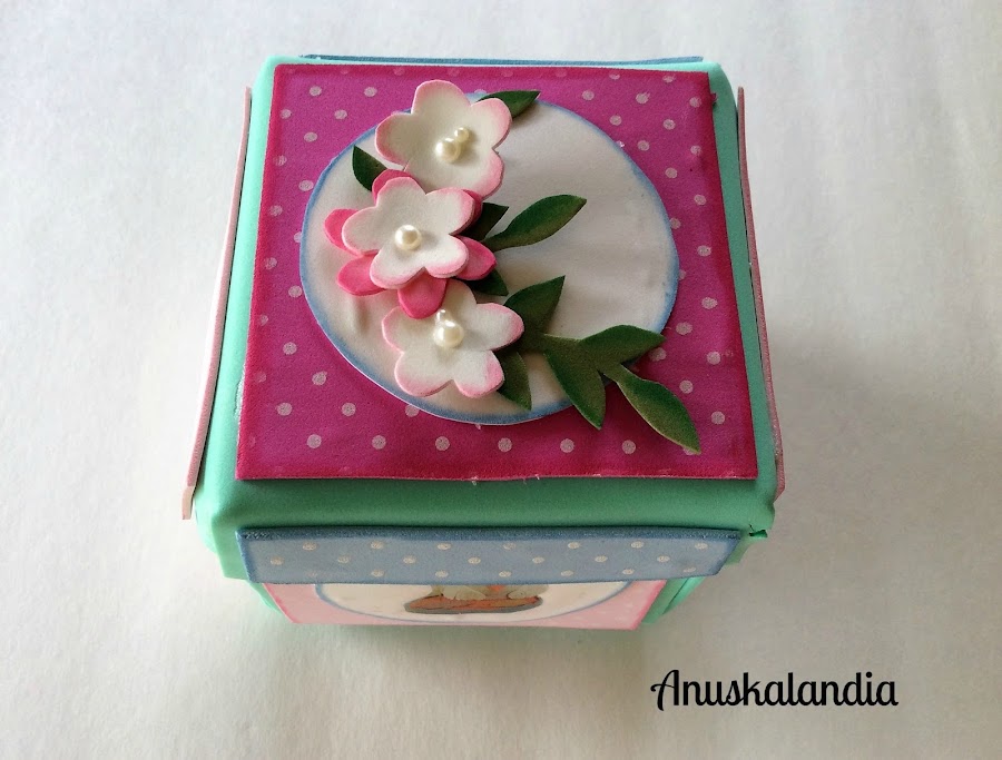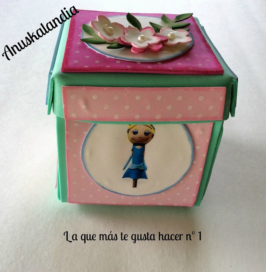 Este tipo de cajas las suelen preparar las amigas scraperas con cartulina, cartón, papel scrap y demás cositas, pues voy yo y no, me saco otra cosa de la manga, a mi que me gusta darle vueltas a las cosas y rizar el rizo, porque no soy yo de lo convencional, ni corta ni perezosa, la he hecho en goma eva, si señoras, en honor a la organizadora/homenajeada, a vosotras, a mi y hasta a la madre superiora.