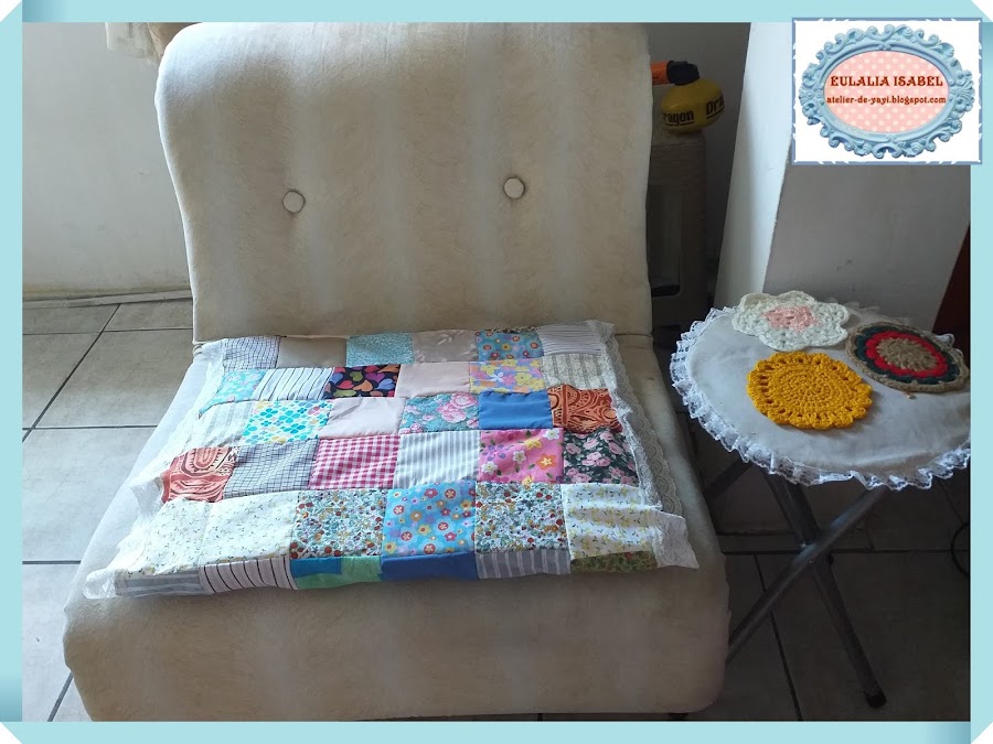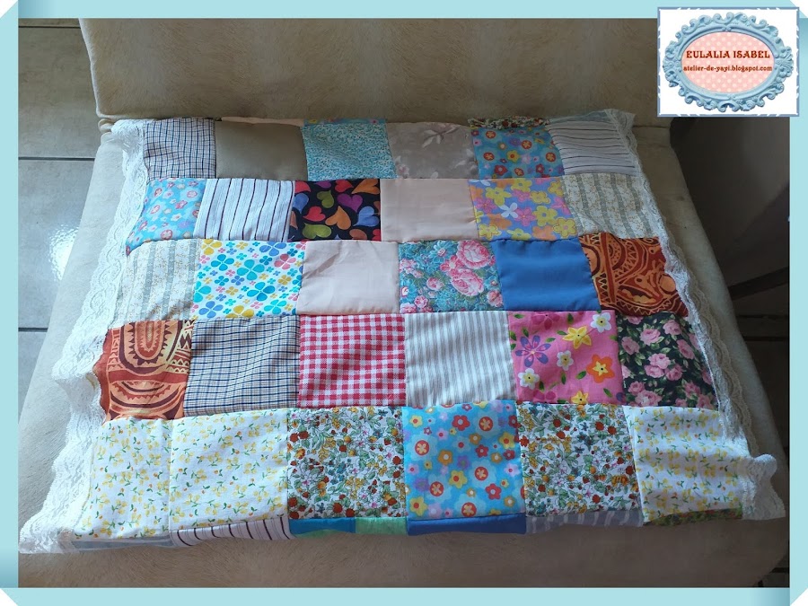 Tengo muchos retazos y me encanta el patchwork, asi que me doy gusto haciendo lo q me agrada para mi casa, tengo cubrecamas, forros, bolsas, tapetes, cortinas, etc, etc, y seguiré con él.