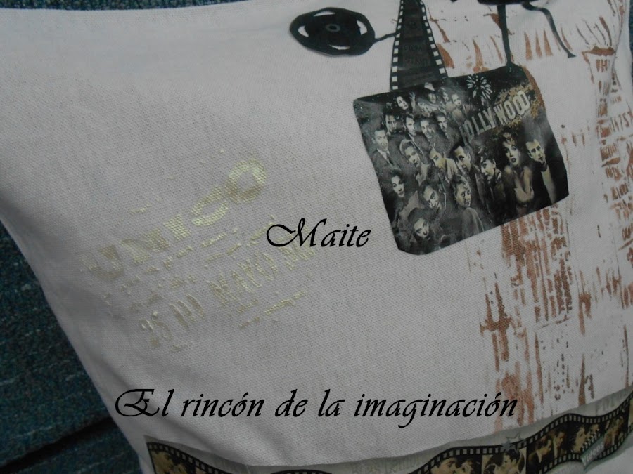 Cuando vi esta fenefa en una tienda de manualidades, se me encendió la bombilla y ya empecé a planificar el cojín. Busqué imágenes relacionadas con el cine y poco a poco fue tomando forma.