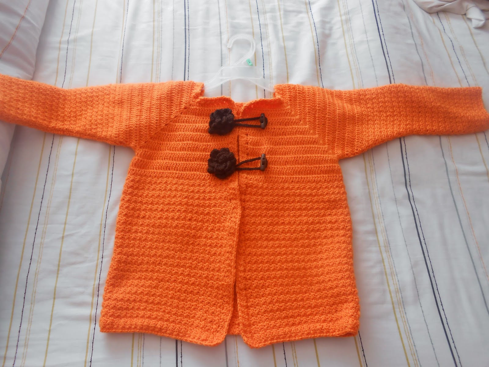 Como se puede apreciar, el modelo que les compartí que lo pueden encontrar en esta entrada Saquito para bebé este fué hecho con medidas para recien nacid@, pero también pueden ver en un modelo similar Saquito de niña para una edad aproximada de 2-3 añitos.