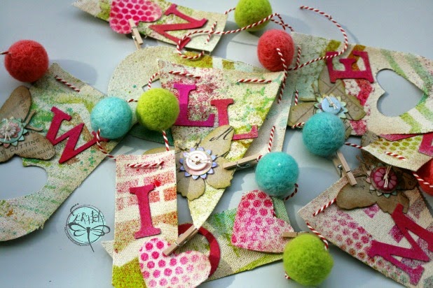 Lo genial en Gargamellscrap es que su reto es bastante libre. Hay una inspiración pero de ahí la creatividad no tiene límites. Yo me inspiré en una parte de la imágen y por fin realicé mis banderines que los tenia como "tarea pendiente" desde hace marras. Son de un set de Stampin" up, hechos en lienzo.