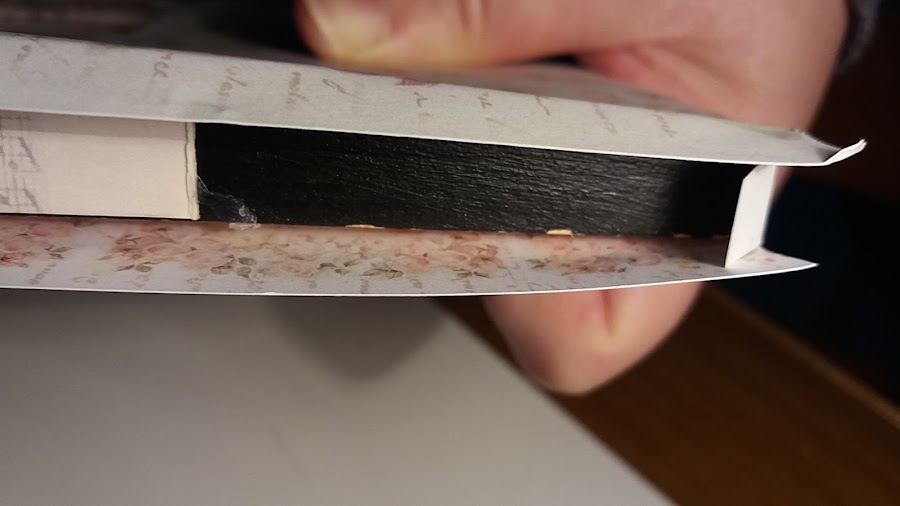 Con la emoción me lío y no hago fotos de todo, pero os lo explico: encima del marco puse mi papel scrap, lo doble un centímetro para cubrir el canto del marco y le di la vuelta, es la foto que estáis viendo. En esta posición trace dos diagonales que se juntan en el centro y con el cuter corte el papel, al cortarlo nos quedan cuatro trozos en forma de triangulo, que iremos pegando por la parte trasera, siguiendo la forma del cuadro , así queda todo cubierto por el papel, y muy bien rematado.