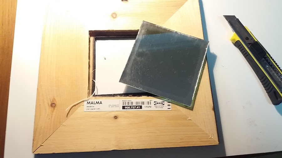 Una vez terminado volvemos a colocar el espejo, aplicamos silicona caliente, presionamos, y una vez se haya secado volvemos a poner ya por fuera otra vez silicona caliente.