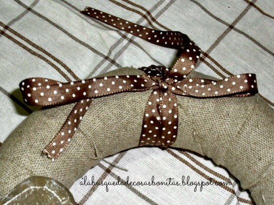 -Un aro de poliexpan forrado con lino grueso de color crudo.