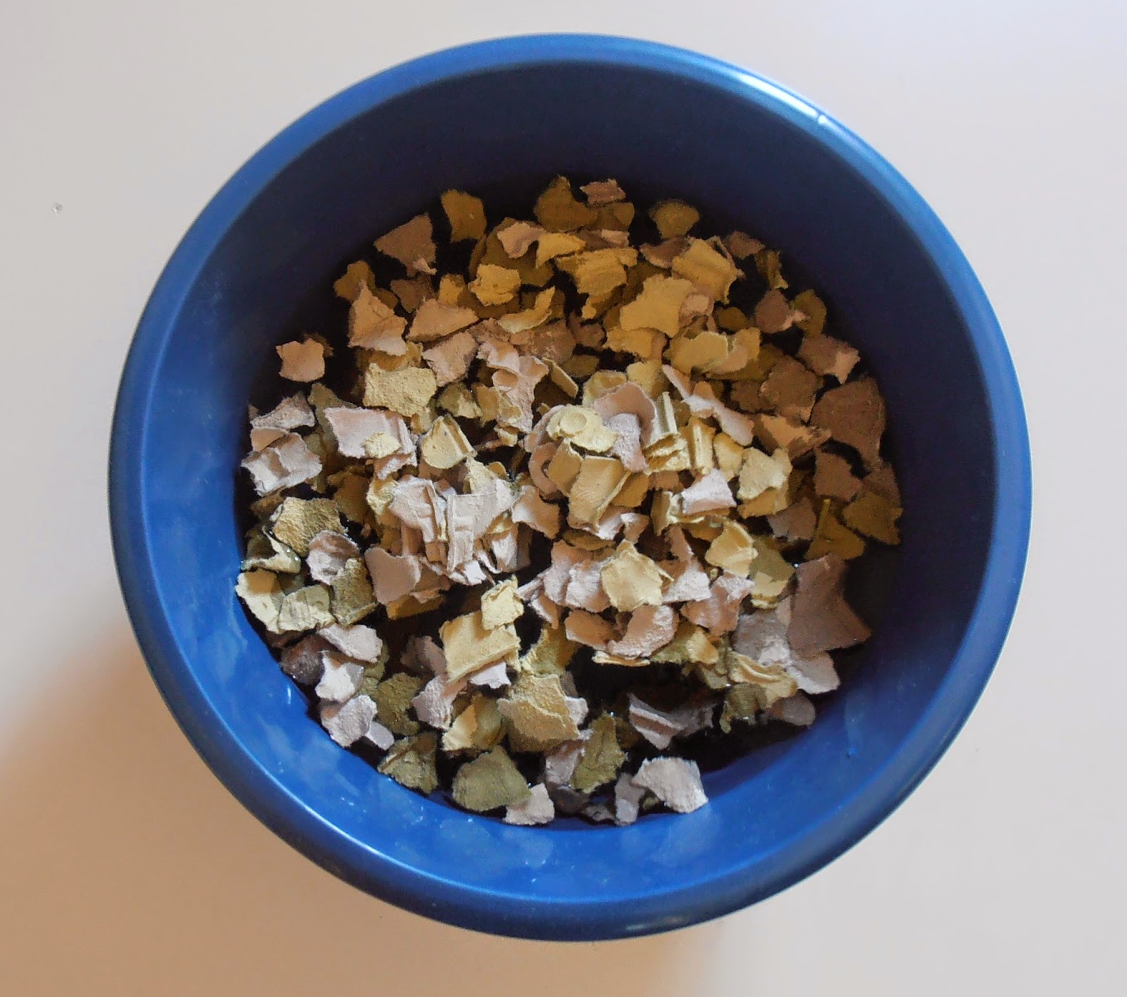 Tenemos que ir rasgando las hueveras en pedacitos. Así:
