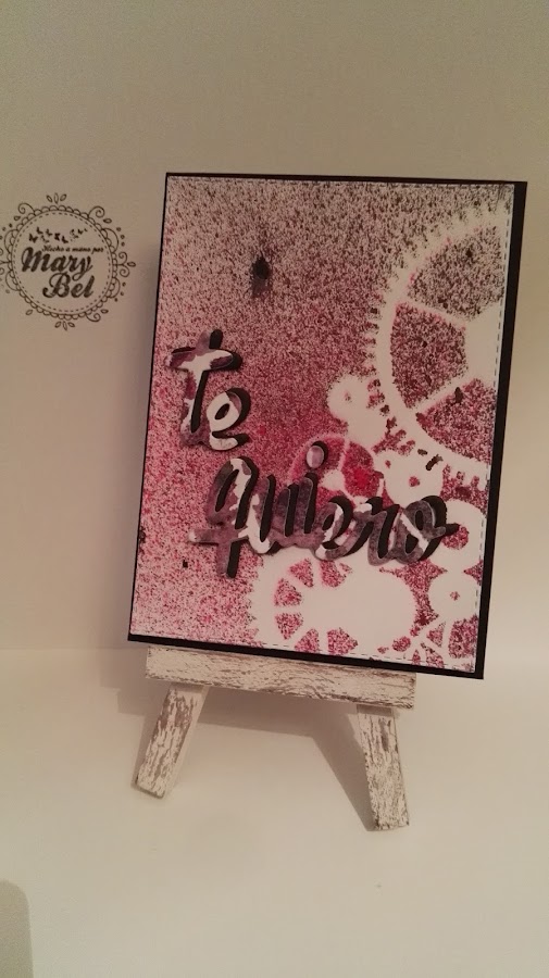 Para el sentimiento, la primera idea era foam negro...pero al retirar la base del papel que tenia de base para no manchar, me he dado cuenta que quedaba un fondo estupendo de donde troquelar las palabras, así que las he troquelado en este papel improvisado, y tambien en el foam negro que tenía pensado, y lo he pegado un poco desplazado para que diera el efecto de sombra, os gusta?