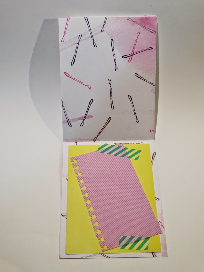 Por dentro, he puesto un par de capas de papel decorado, una de ellas con untroquel de borde simulando una hoja de libreta y un poco de washi tape para acabar la decoración.