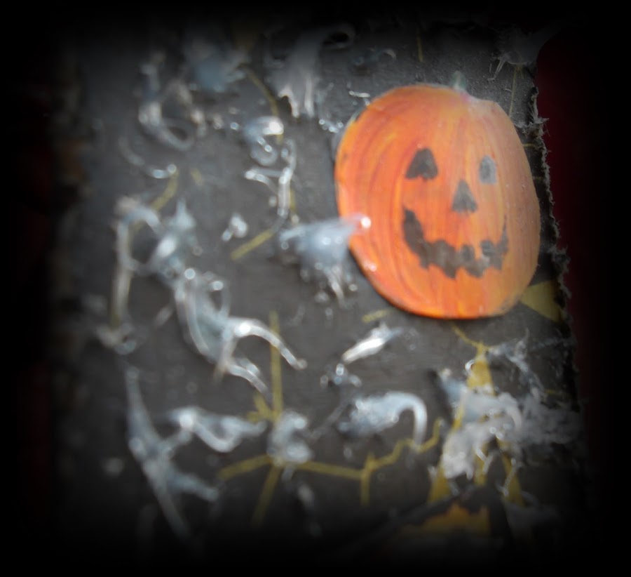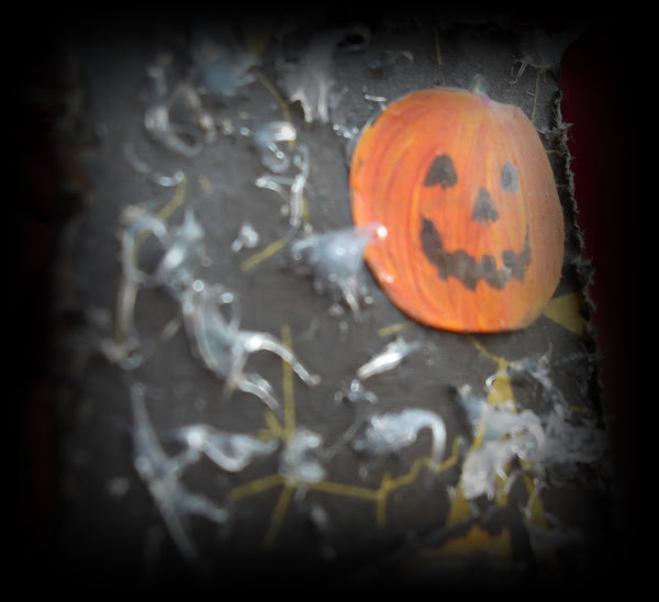 Por último, para hacer más terrorífica mi etiqueta, con la misma silicona fría le hice esta especie de "mucocidad" o restos de tela de araña, no se muy bien como llamarla, pero creo que conseguí un efecto mas terrorífico aun ¿no os parece?