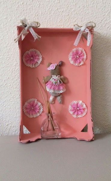 Y para terminarlo , puse esta puntilla que veis, con la que hice las flores que van en la caja,( en el centro llevan una perlita cada una),