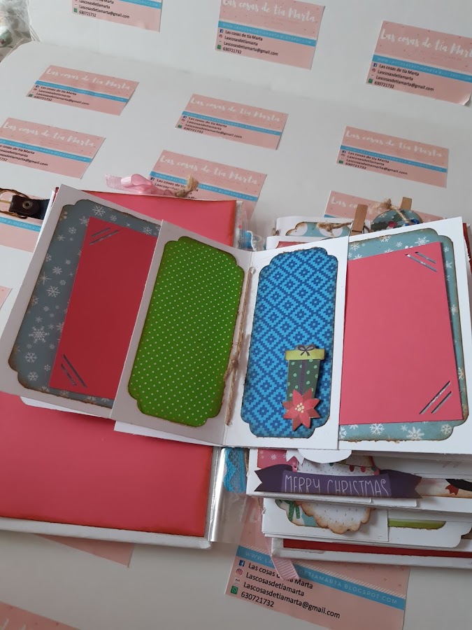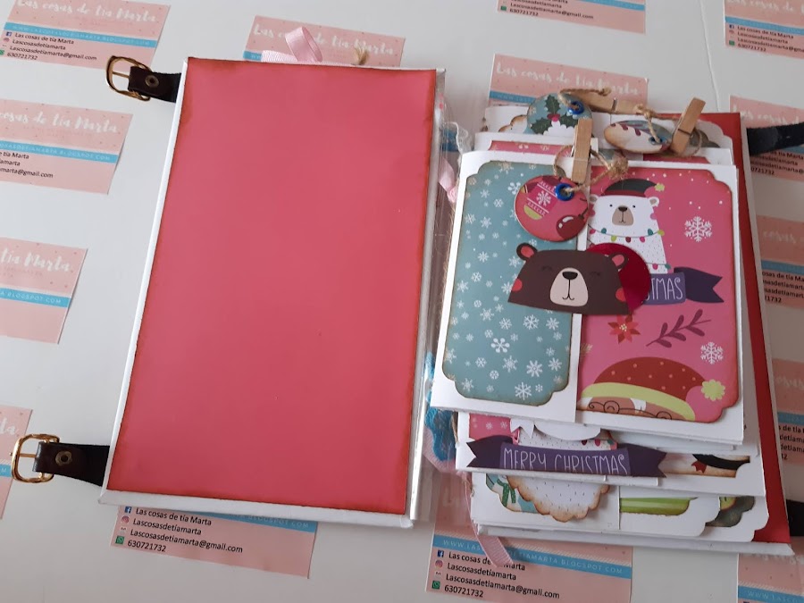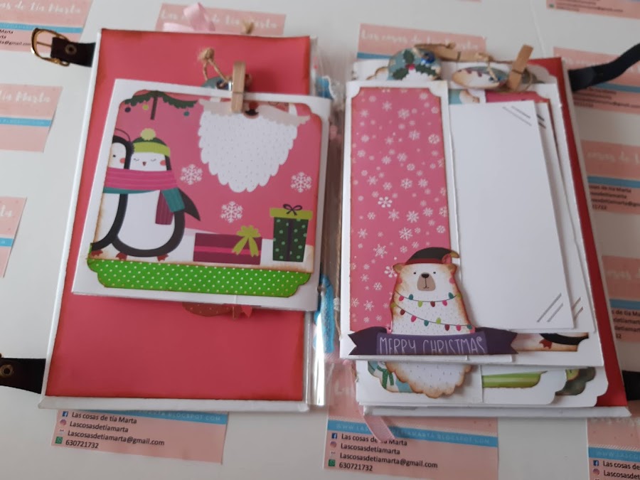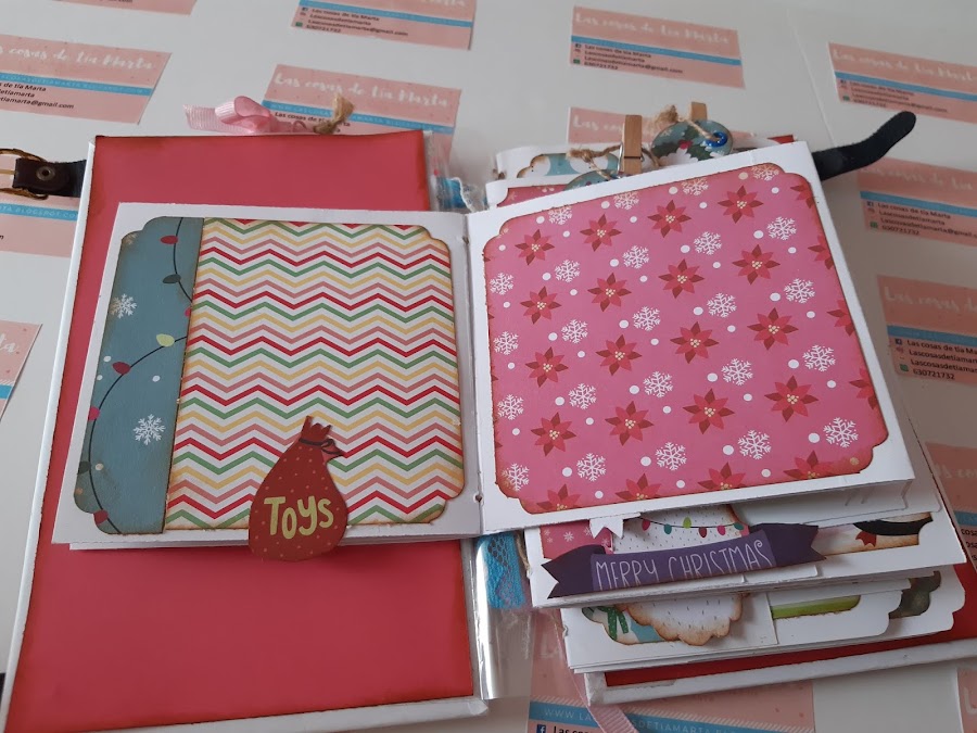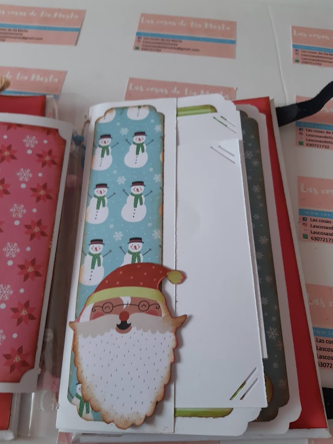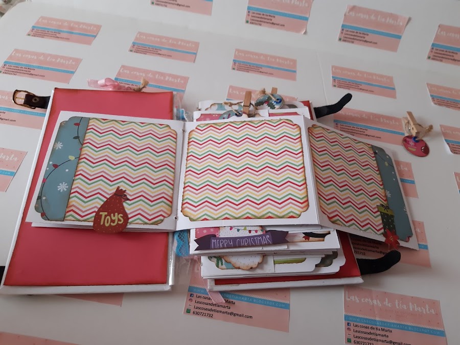 Os dejo un pequeño reportaje fotográfico hoja a hoja. En la portada lleva un cascabel junto con unos bonitos papeles navideños.