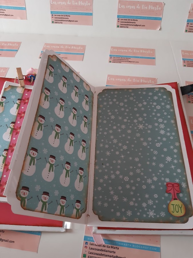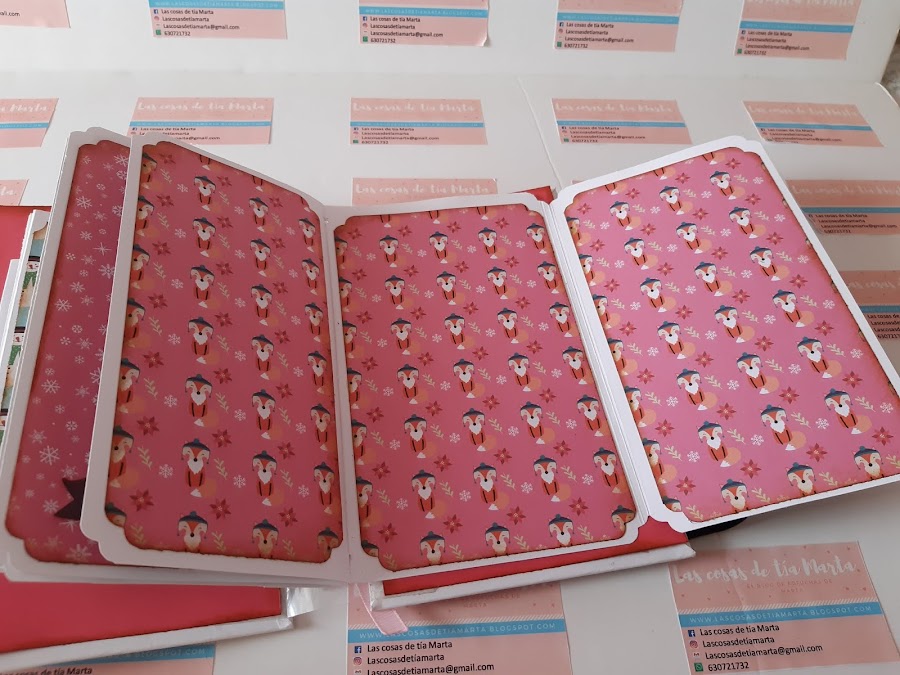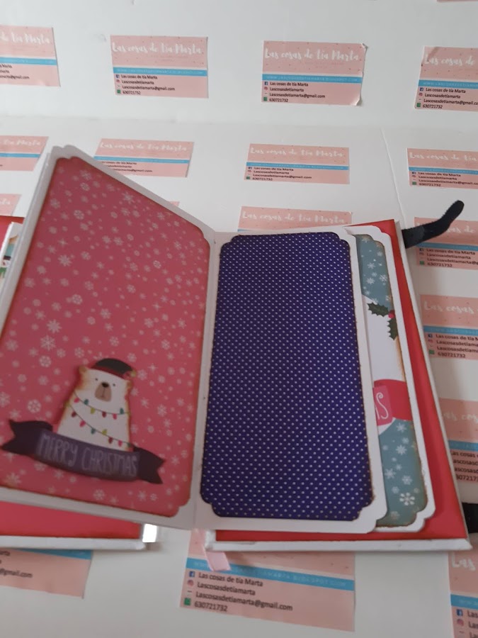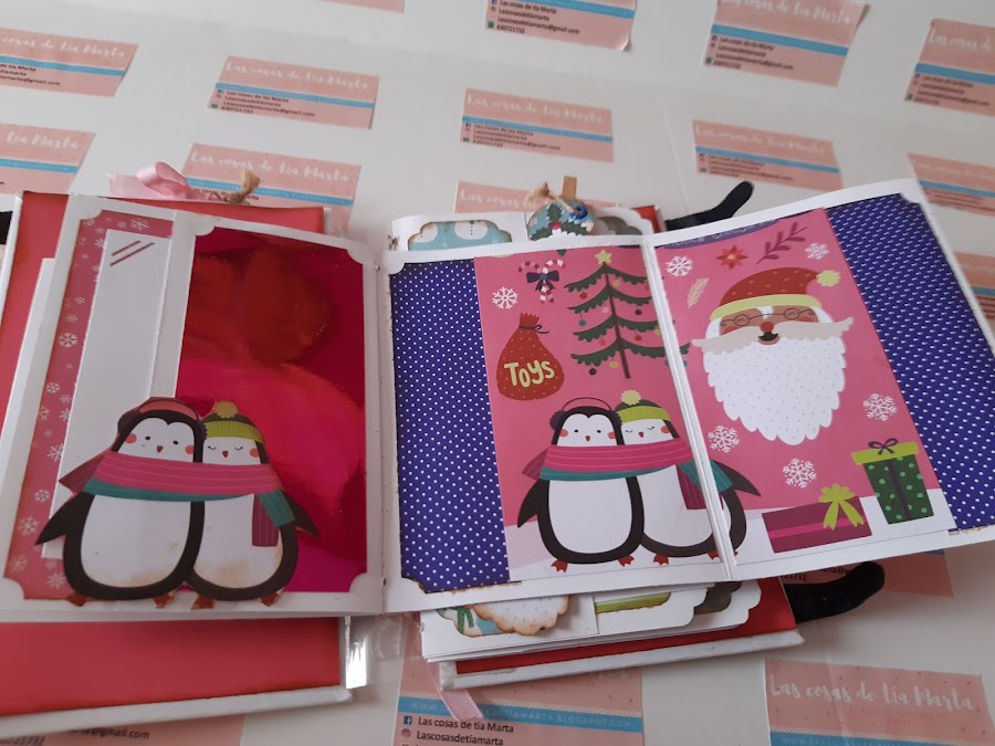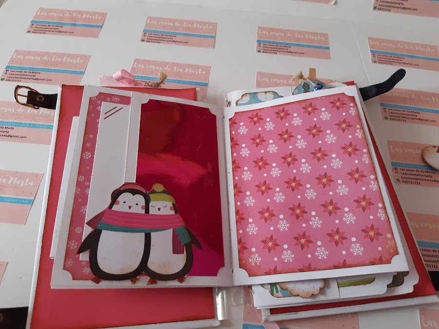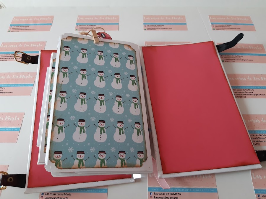 Os dejo un pequeño reportaje fotográfico hoja a hoja. En la portada lleva un cascabel junto con unos bonitos papeles navideños.