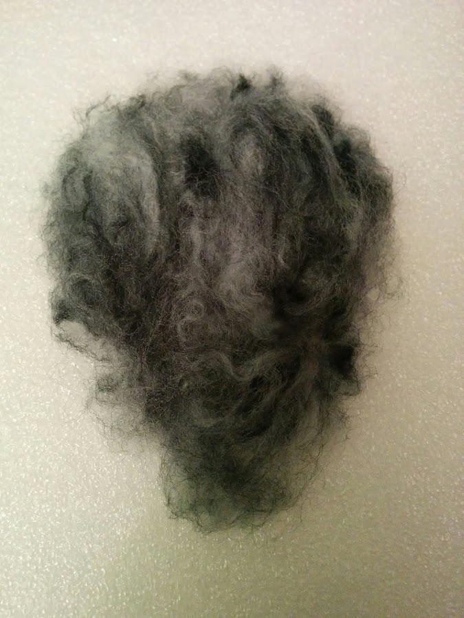 En esta foto ya lleva la pelliza pero se la hice posteriormente, no sabía como hacer esa dichosa pelliza y entonces se me ocurrió hacerla con un poco de lana cardada. Tengo una lana gorda tamizada en blanco y negro y pensé que podía servir, así que corté unas cuantas hebras y a cardar se ha dicho. La trabajé un poco, poco porque no controlo esta técnica, y el resultado fue éste