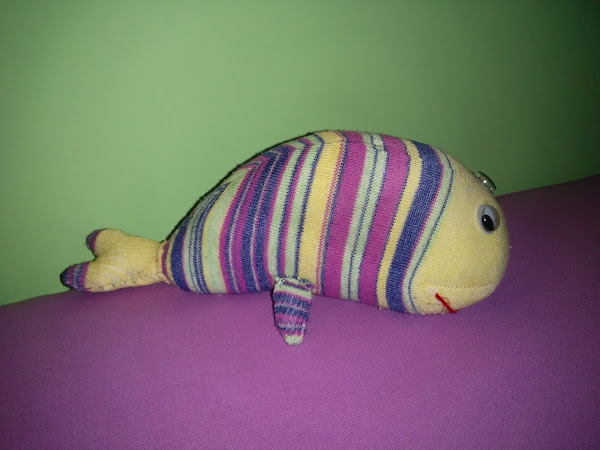 Aunque no tengo fotos lo explico lo mejor posible, con el resto del calcetín hacemos la cola y las aletas, las recortamos, cosemos y rellenamos. Después las cosemos al cuerpo con punto escondido o similar. Pegamos los ojos móviles y la boca.