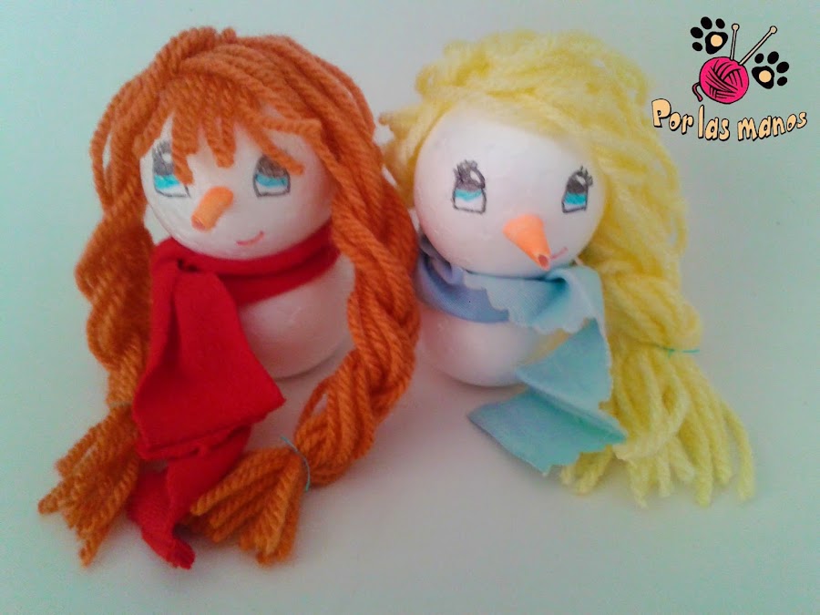 Están hechas con dos bolas de porexpan y el resto con lana y tela. No es mucho, lo he hecho en poco tiempo porque no he podido sacar más tiempo...pero espero que os guste!