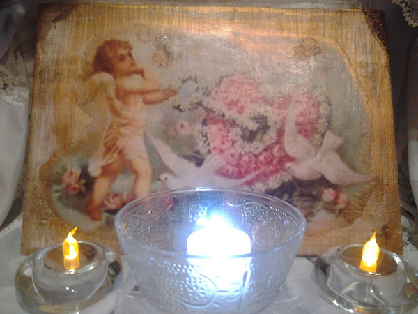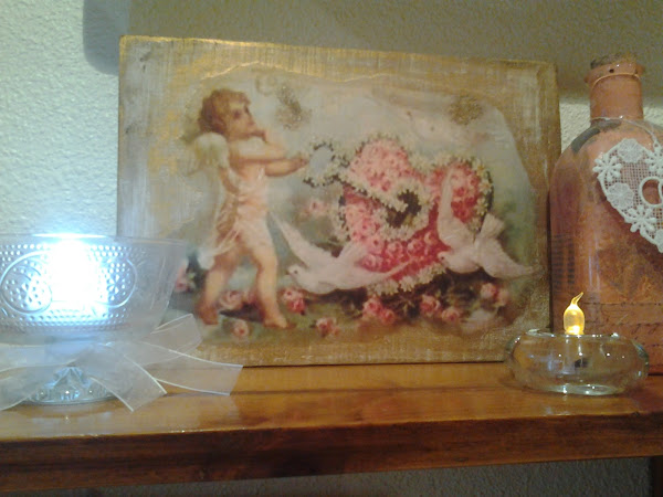 Este fúe, rendir un homenaje al mes que hoy termina; mes, dedicado al amor y la amistad. Y qué mejor que llenando nuestras páginas de hermosos cupidos, flechas de amor, corazones..., pues sin enrollarme mas os muestro mi trabajo, un amoroso cupído que preside mi salón, para no olvidar nunca, que lo único que realmente necesitamos es AMAR.