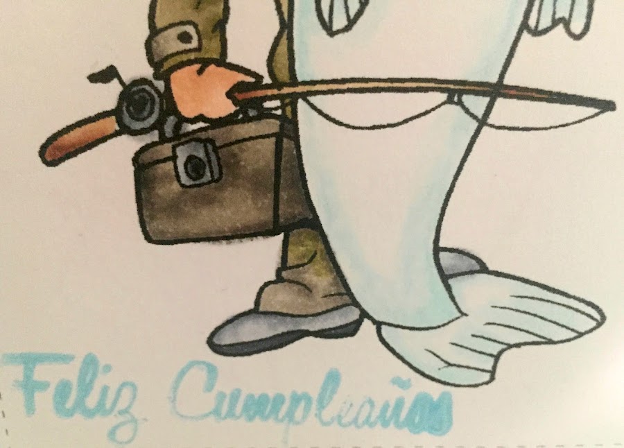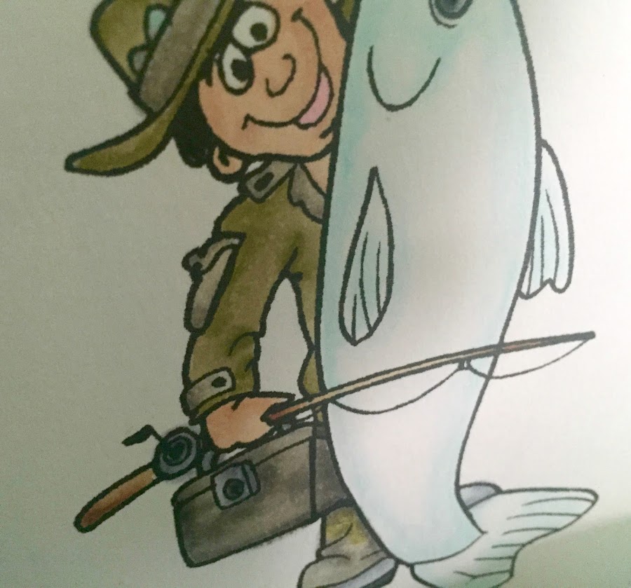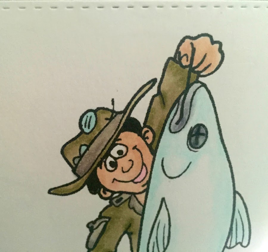 Hoy toca vídeo nuevo en mi canal y os enseño una tarjeta de felicitación a un chico que le gusta mucho pescar, así que me puse a buscar un digi digital de pescador y encontré este que me gusto mucho. Lo pinte con Copics y las bases son cartulinas en tonos azules.