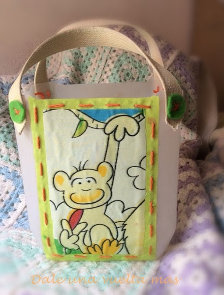 pegué y plastifiqué con cola vinílica diluida en un poco de agua, dos retazos de tela que me sobraron de unas sábanas que le hice.