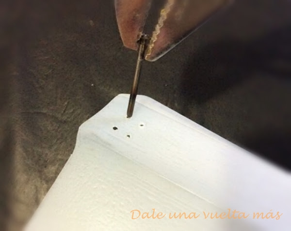 Con un clavo caliente realicé cuatro perforaciones en las esquinas para poder coser las manijas